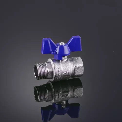 Кран шаровой из латуни (бабочка) Н/Р - В/Р (Синий)
