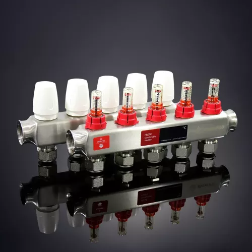 - Системы отопления: В домах, офисах и промышленных объектах коллектор используется для распределения теплоносителя по различным контурам системы отопления. Наличие расходомера позволяет эффективно регулировать расход теплоносителя в каждом контуре, обеспечивая равномерное распределение тепла и снижая энергопотребление.